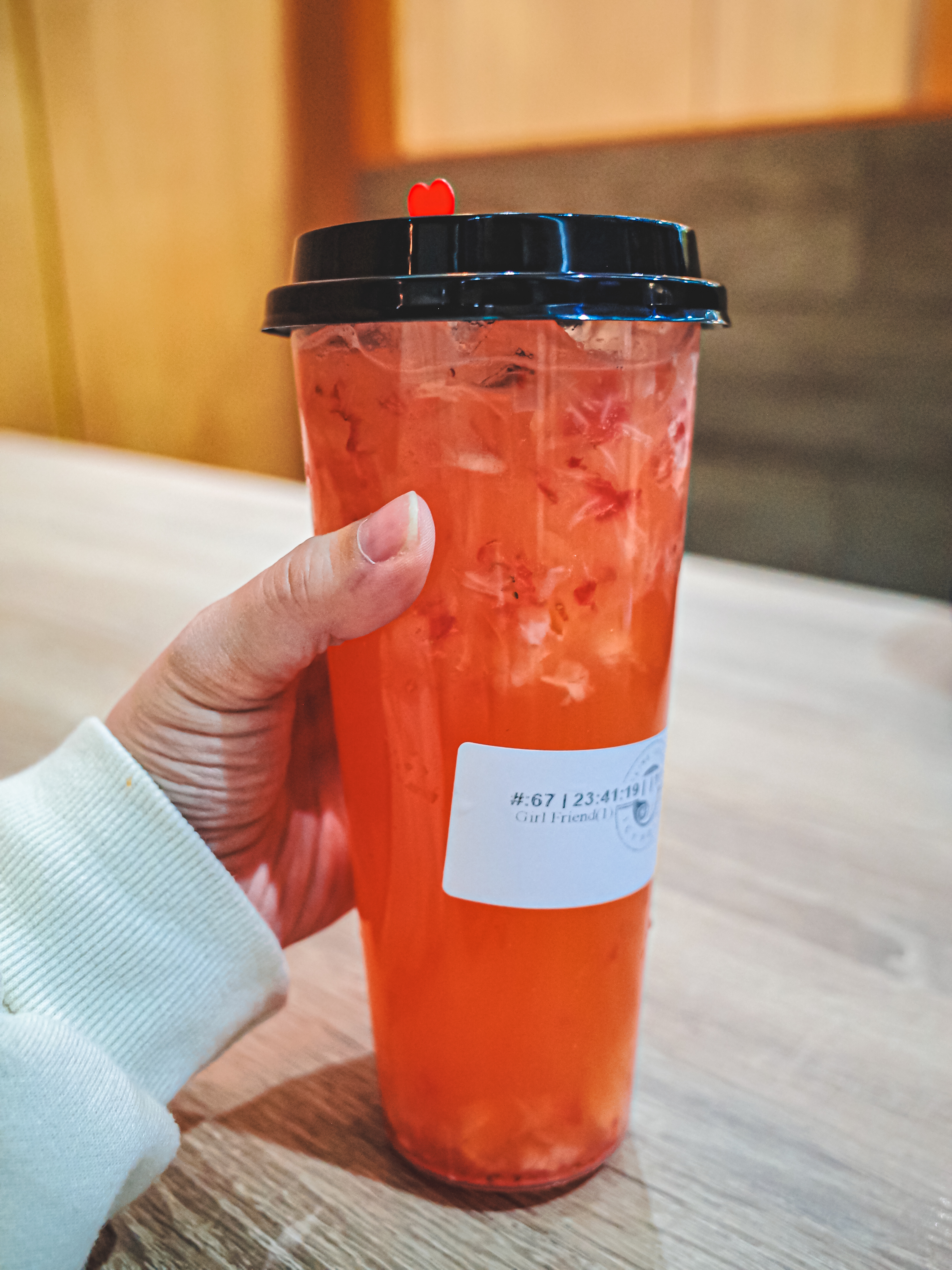 저녁식사 이후에는 같은 몰에 있는 보바샵으로 가서 메뉴 드링크 이름이 걸프렌드인걸로 시킴. 맛은 tropical fruity flavor. 여기는 직관적인 이름이 아니라 음료에 들어간 재료 일일히 봐야해서 매우 귀찮았다.