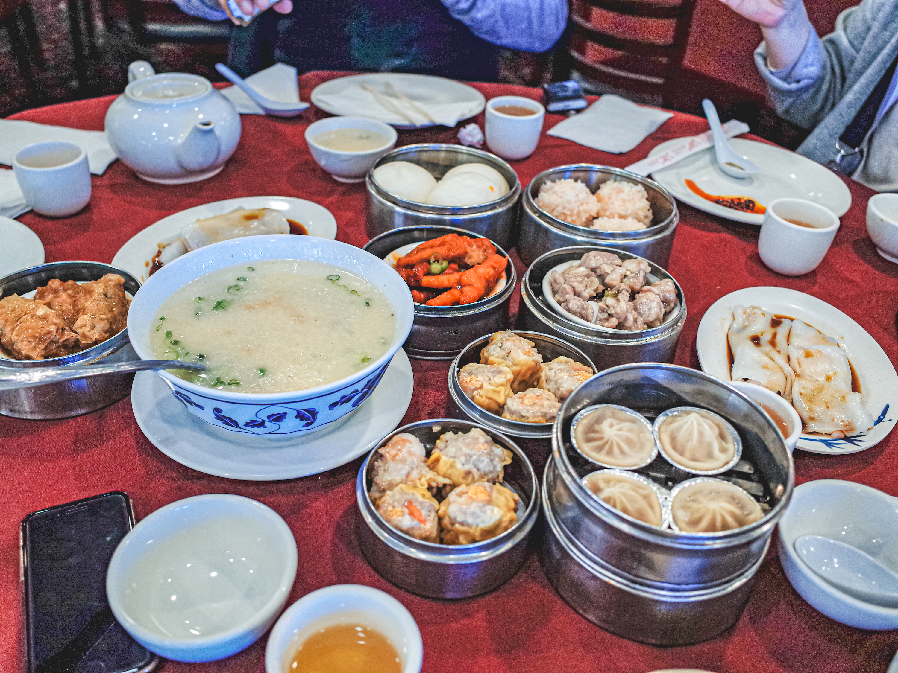 어제 저녁 스테이크가 너무 heavy했는지 아빠가 딤섬은 먹으면 배가 더부룩하지 않고 든든하다고 하셔서 오늘은 차이나타운 딤섬집으로 갔다. 전에 베가스왔을때도 약혼자와 온 적이 있는 딤섬집. 약간 안좋은 점은 한꺼번에 시킨 모든 딤섬이 나오기 때문에 여러가지 먹다보면 나중에 먹는건 식어있어서 그게 아쉬웠다. 그리고 죽을 시키면 저 큰 그릇에 가득 나온다. 모르고 죽 2종류를 시켰다가 죽파티함 ㅋㅋㅋㅋ 나머지 1개는 사진찍고나서 나중에 나왔다.